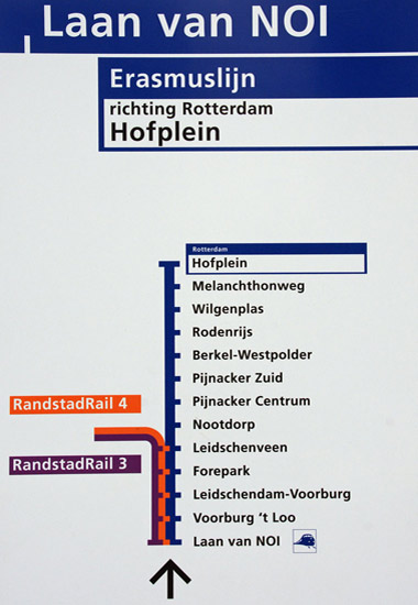 The former Hofpleinlijn now has RandstadRail Erasmuslijn branding in advance of incorporation with Rotterdam Metro's line of that name.