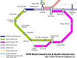 The viaducts will have slender and rounded columns. Adequate space will be provided for landscape. The façade will be painted with harmonious colours to gel with the surroundings. A new depot will be constructed at the ex-Wong Chuk Hang site to provide stabling and maintenance facilities for the trains operating on the new line. The track will be sunken and fully enclosed below the ground to control noise during maintenance work in the depot. The new Wong Chuk Hang station will feature an additional 12,000m² of open space to provide landscape above the Staunton Creek Nullah. A section of the Nullah will be decked over. The Heung Yip Road will be widened to provide a public transport interchange between the road and rail beneath the station. The open space also includes 2,000m² of pet space and a 2km-long viaduct. Two new platforms will be constructed at Admiralty Station below the eastern end to provide convenient interchange facilities to passengers travelling between the MTR lines. All the stations will have two or more entrances. Rolling stockTrains with three/four cars, measuring 60m-long, will operate the route with headway of two to four minutes. The trains will be electric powered. ConstructionAs major part of the route is underground in the rocks, land will be excavated through the drill and blast method or by mechanical means wherever feasible. Cut and cover methods will be used for shallow excavations. Temporary barging facilities will be constructed at the Western District Public Cargo Working Area, Lee Nam Road and Telegraph Bay to handle the excavated material. A temporary magazine site will also be constructed to store the explosives. These store rooms will have a separate entrance and exit to ensure high safety levels. |