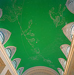 The ceiling is painted with stars and zodiac constellations. |