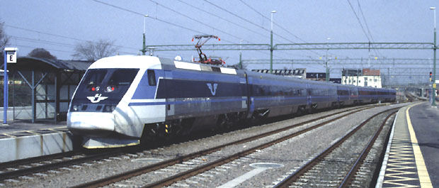 The front ends of X2000 trains are painted with a large area of white for high visibilty.