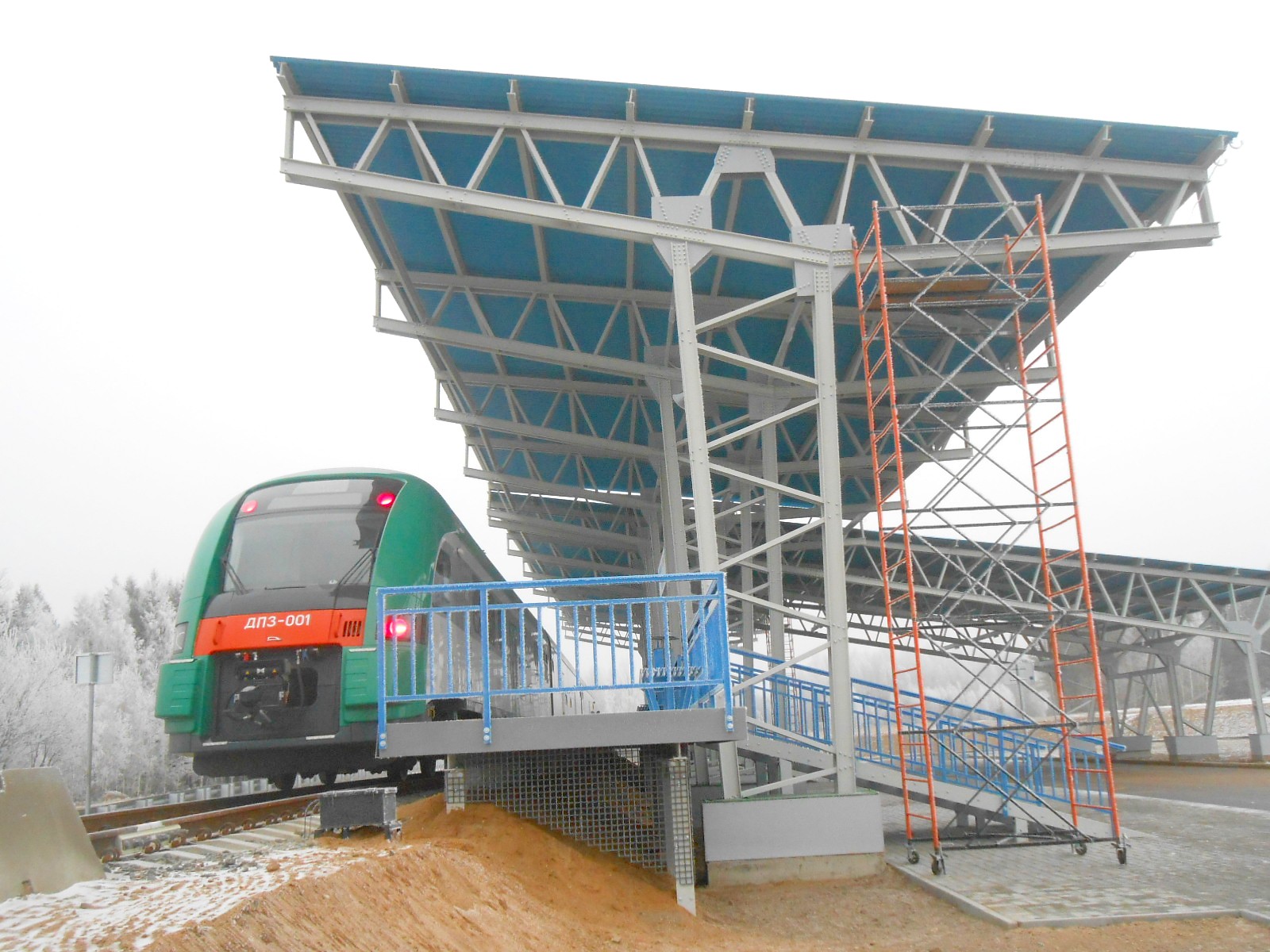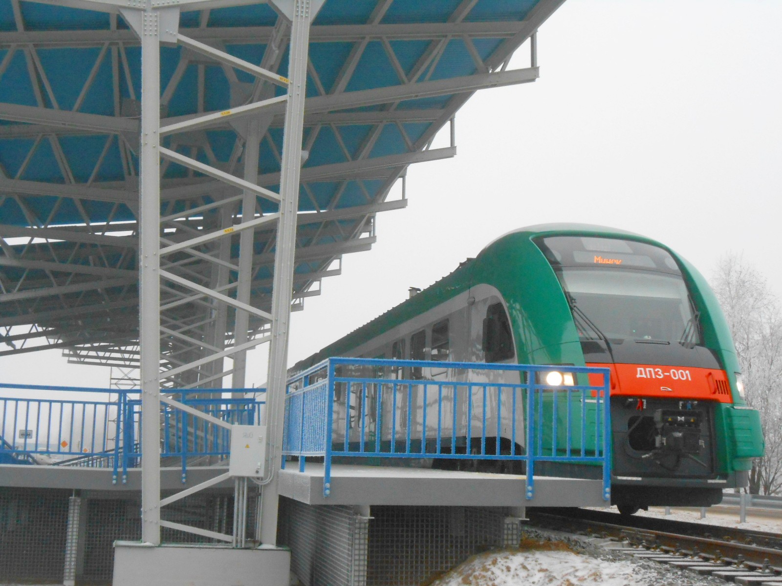 Дизель-поезд ДП3-001 у платформы Национальный аэропорт Минск.