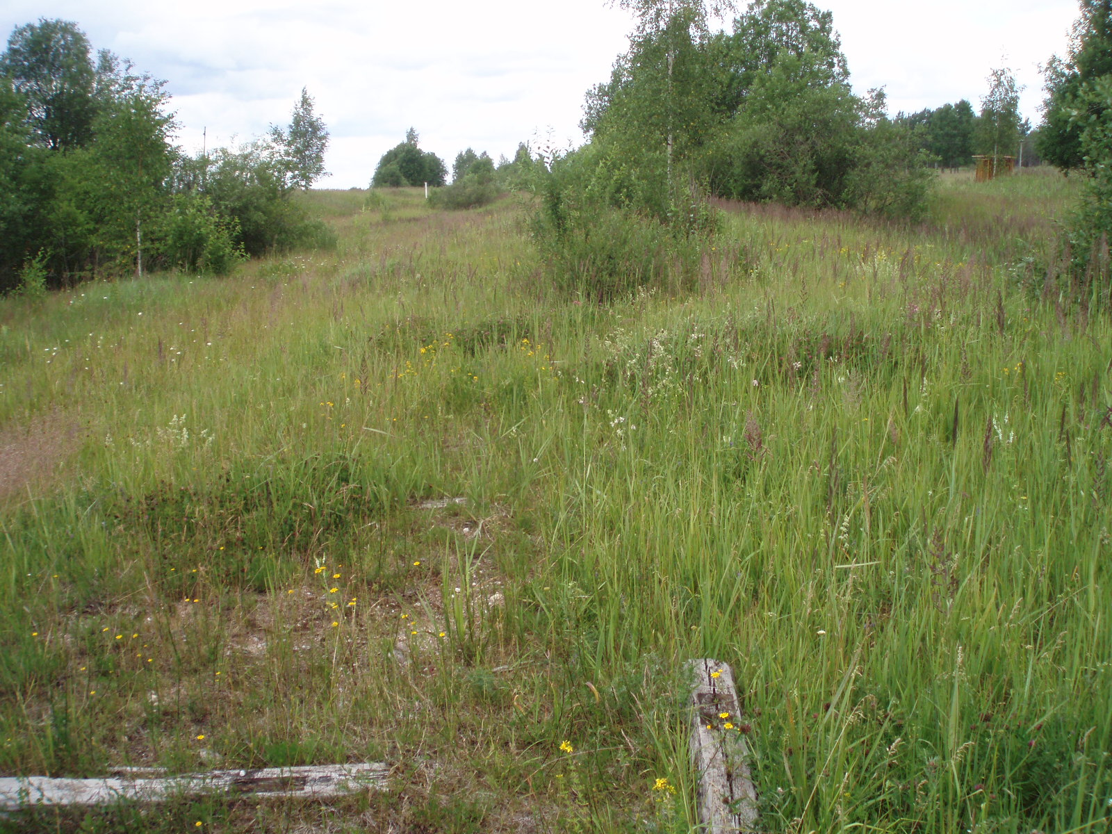 Разобранная линия узкоколейной железной дороги в деревне Сосонка. Вид в сторону Городовика.
