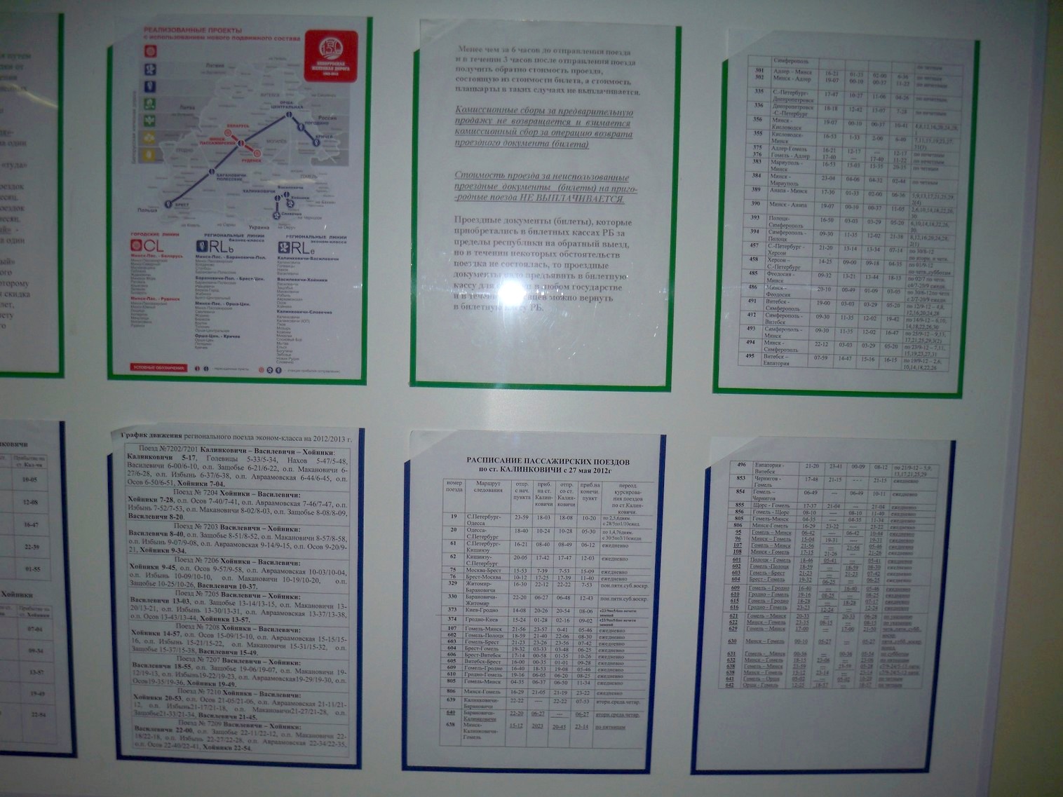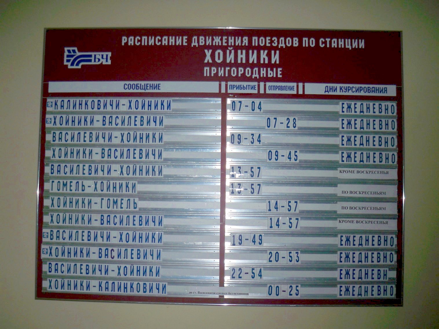 Расписание движения поездов по станции Василевичи. Значительная часть из них — на Хойники.