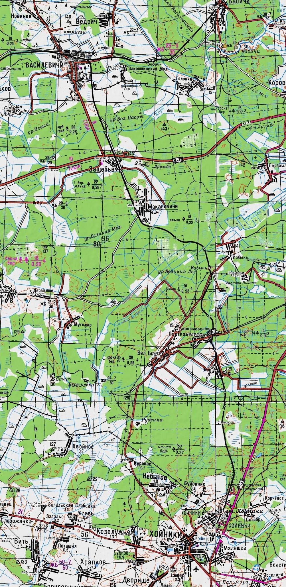 ЖЕЛЕЗНОДОРОЖНАЯ ЛИНИЯ ВАСИЛЕВИЧИ — ХОЙНИКИ СХЕМЫ И ТОПОГРАФИЧЕСКИЕ КАРТЫ