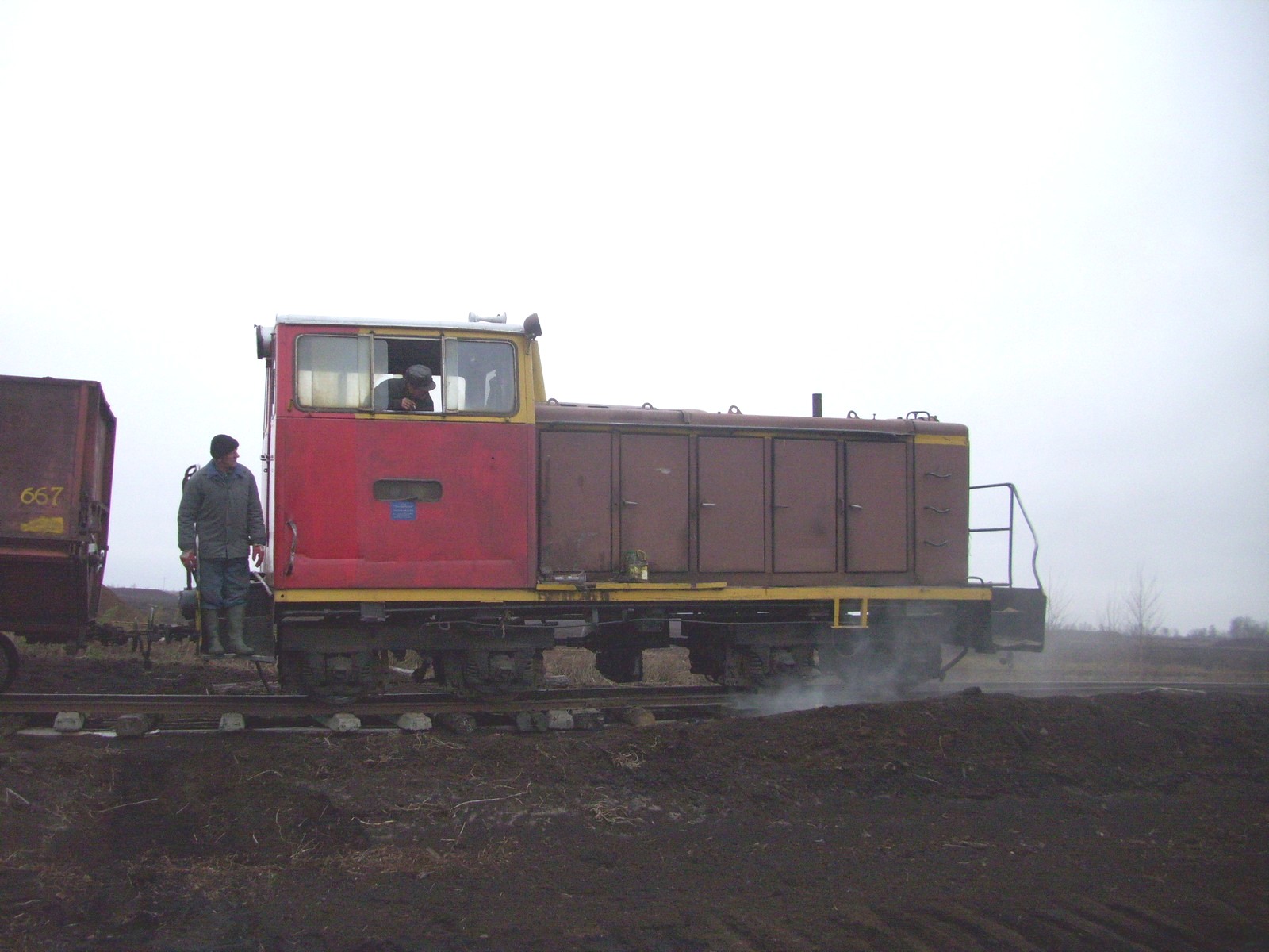 Торфополе. Поезд движется вагонами вперёд по «времянке» к месту погрузки. Время 9:00.