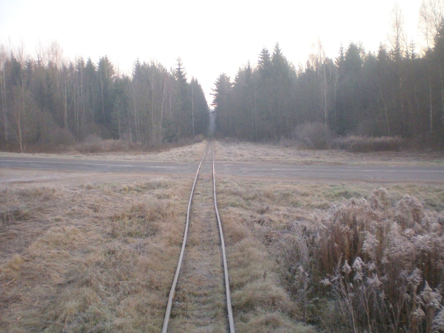Вид в сторону Юрьево. Пересечение с автодорогой Кривая Берёза — Мгле. Время 8:17.