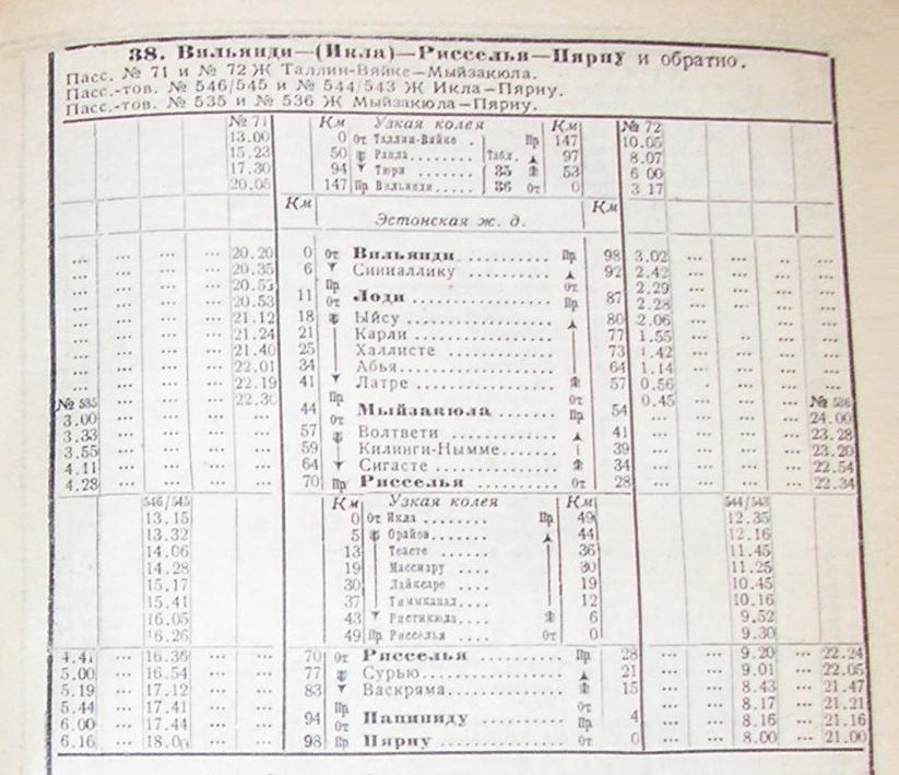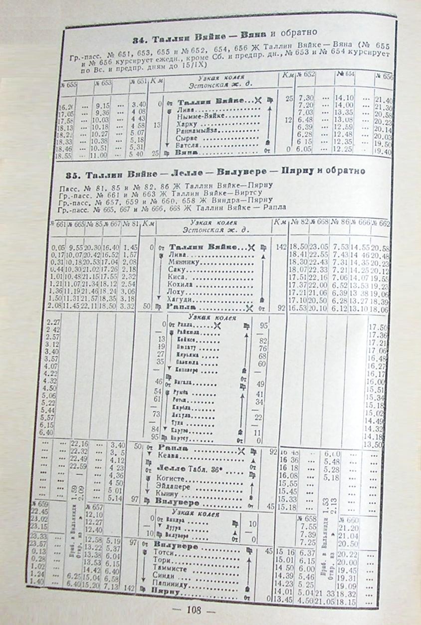 УЗКОКОЛЕЙНАЯ ЖЕЛЕЗНАЯ ДОРОГА В ЗАПАДНЫХ РАЙОНАХ ЭСТОНСКОЙ РЕСПУБЛИКИ РАСПИСАНИЯ ДВИЖЕНИЯ ПОЕЗДОВ