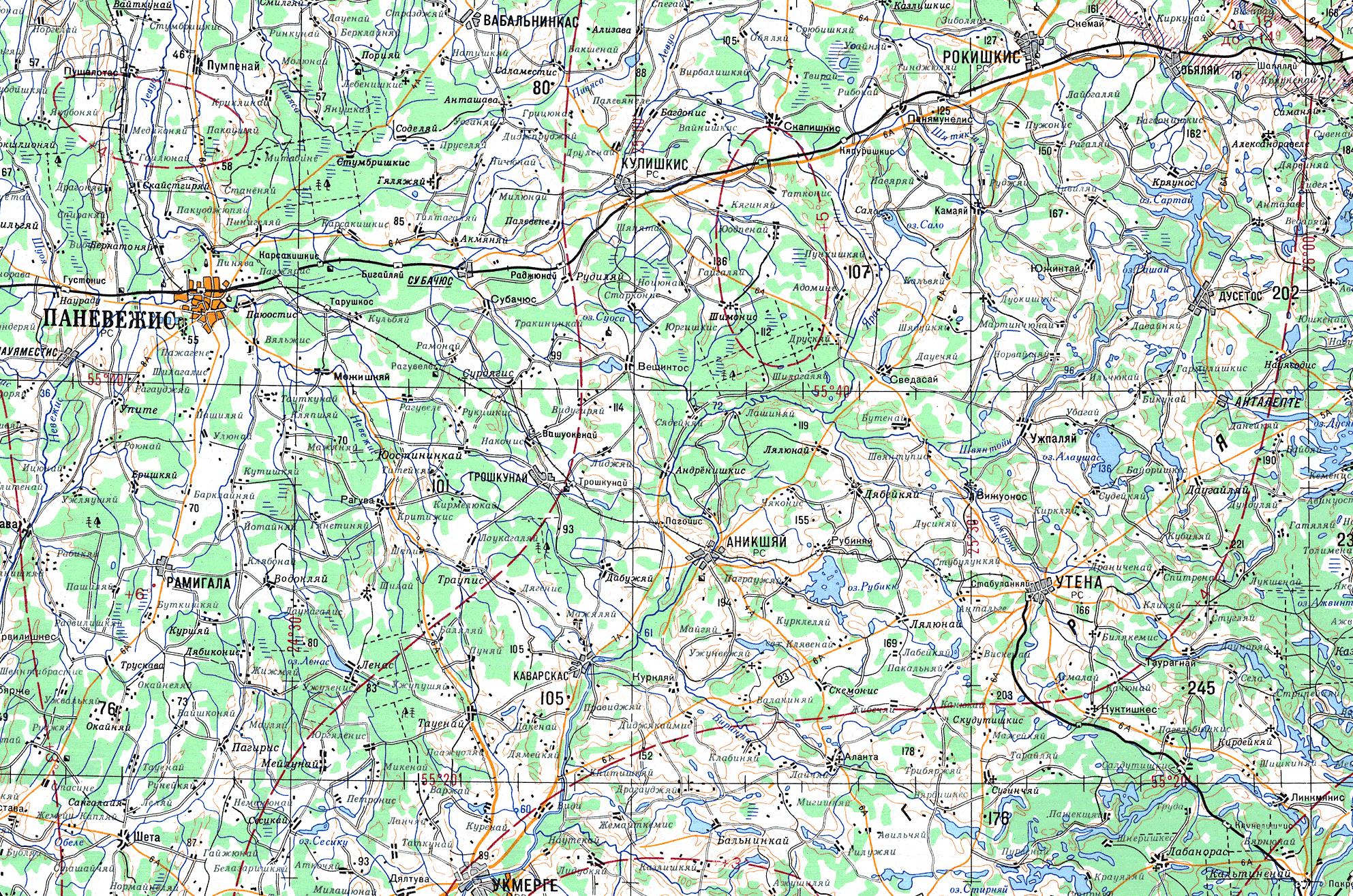 Показан участок Паневежис — Рагувеле. Состояние местности соответствует дореволюционному