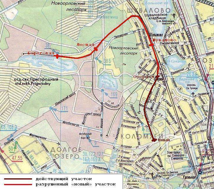Местонахождение станций Лесная и Береговая показано неправильно.