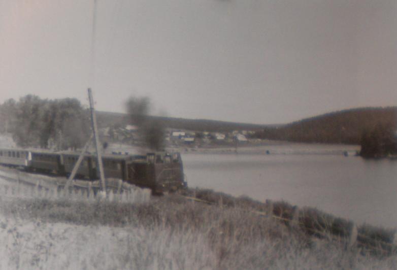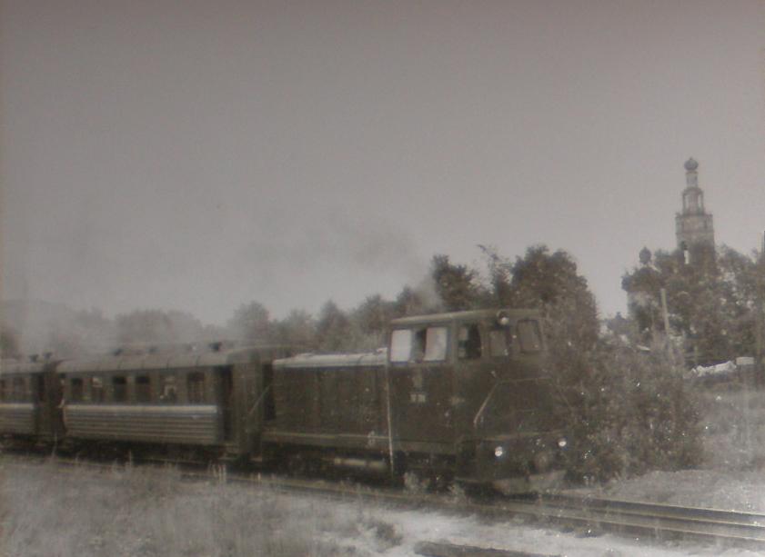 Станция Урал. Тепловоз ТУ7 и первый вагон пассажирского поезда. 1991 год.