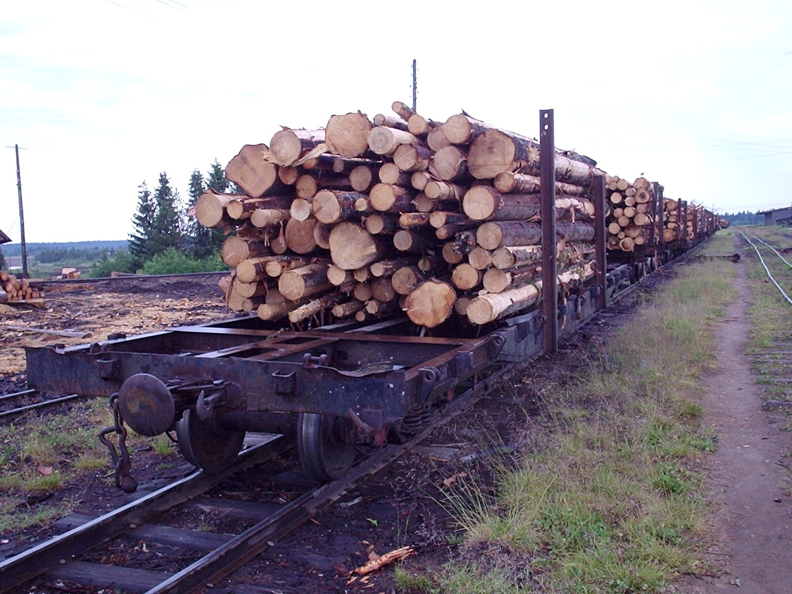 Немногим далее. Сцеп, переоборудованный для погрузки леса в сортиментах.