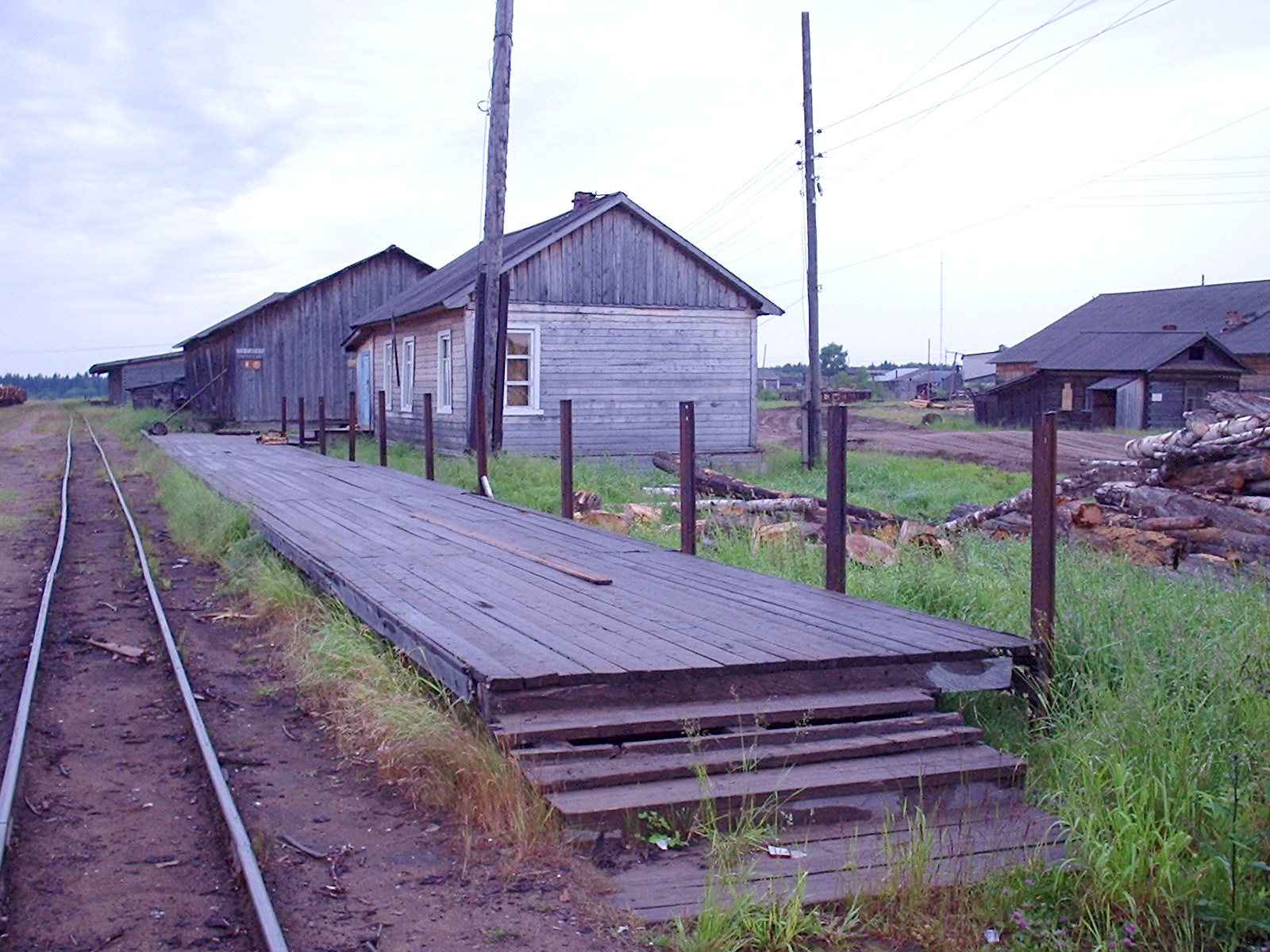 Вид от пассажирской платформы в сторону реки Уфтюга. На её берегу когда-то
