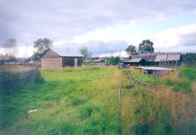 Вид со стороны леса на депо Лепшинской узкоколейной железной дороги.