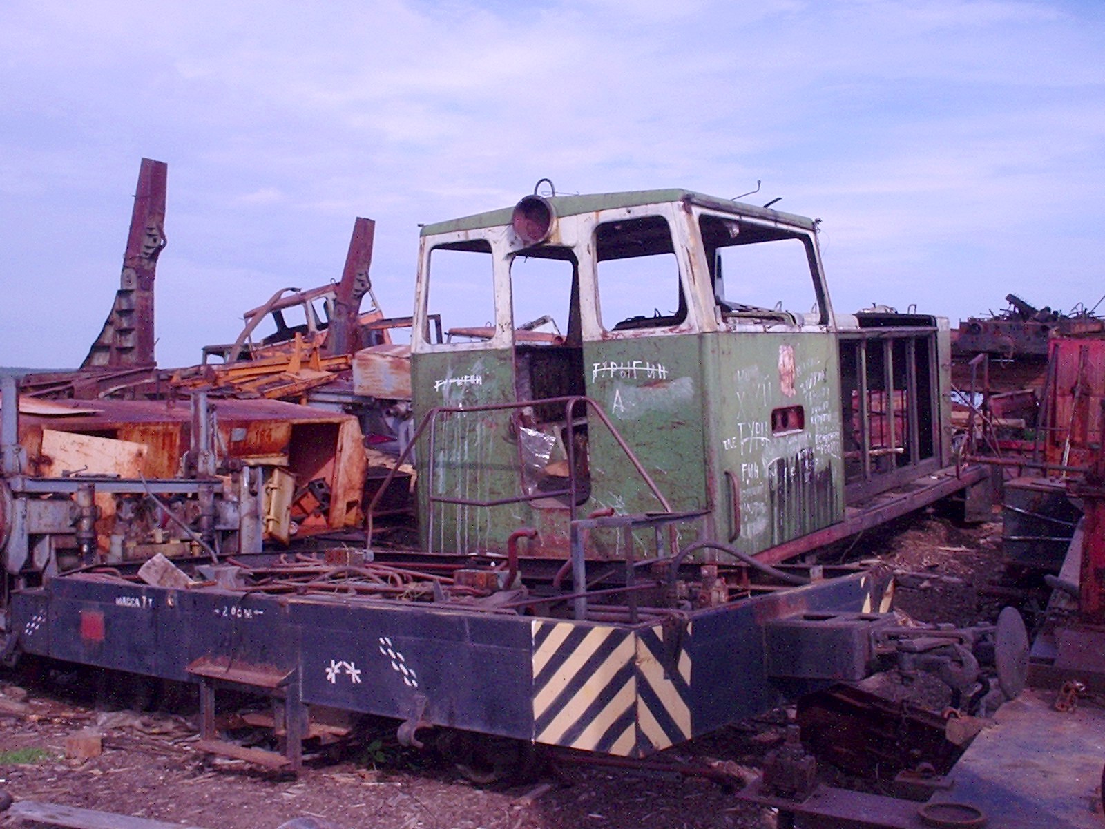Кабина тепловоза (скорее всего, ТУ7 либо ТУ7А) на нижнем складе.