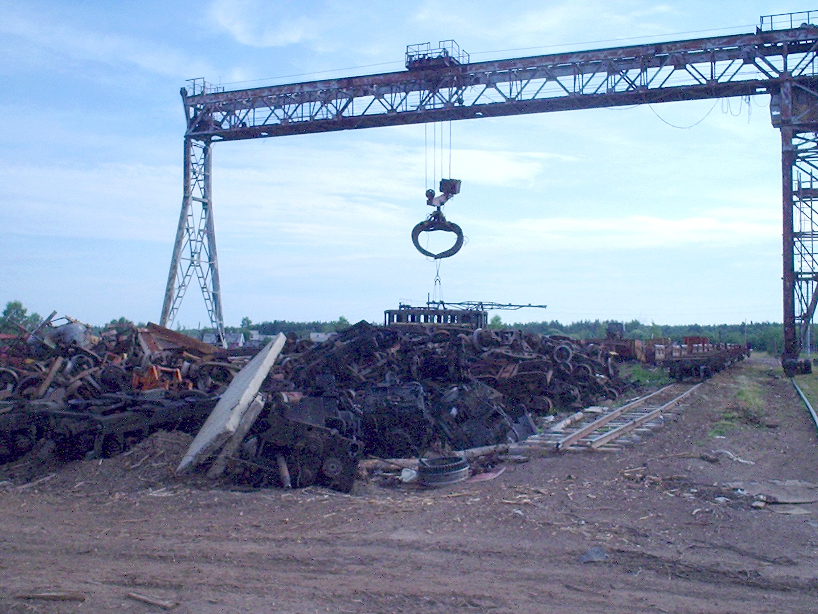 Разгромленная путевая машина на нижнем складе.