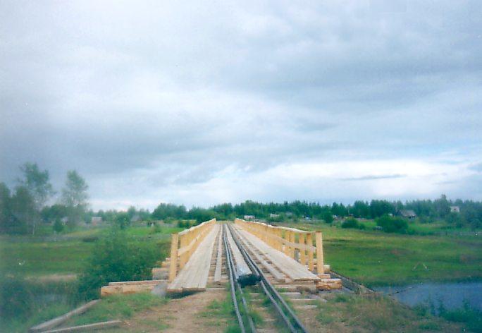 Мост через реку Волошка. Вид со стороны леса в направлении центра посёлка Волошка.