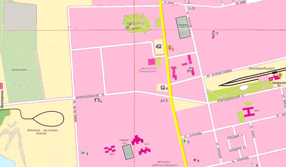 Евпаторийская детская железная дорога на плане города, изданном ориентировочно в 2003 году.