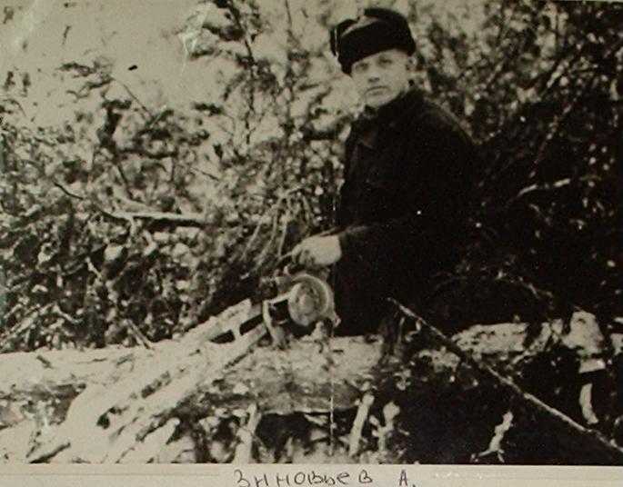 Рабочий лесопункта А. Зиновьев. 1950 год (?).