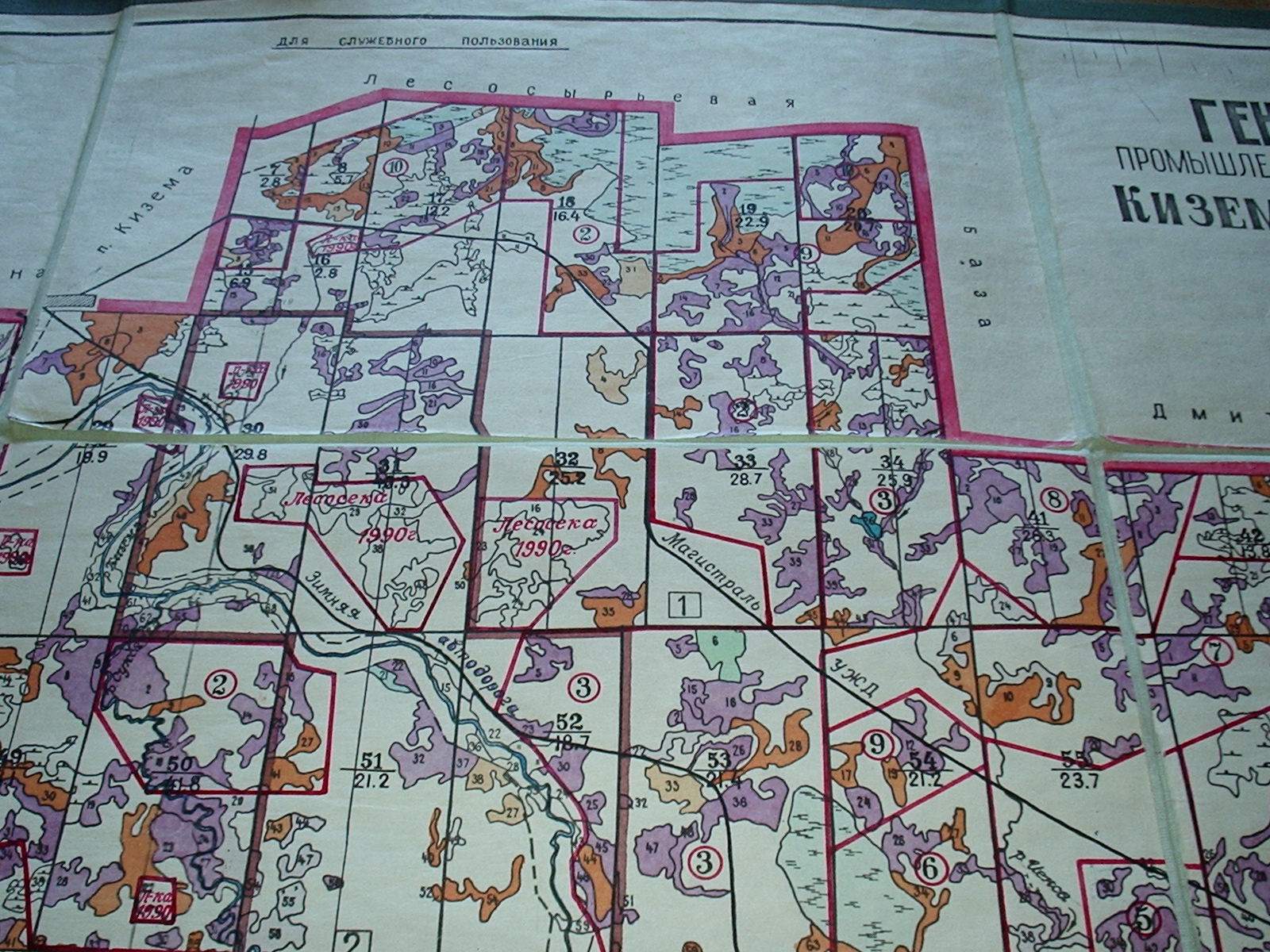Узкоколейная железная дорога на «служебной» карте Киземского лестрансхоза.