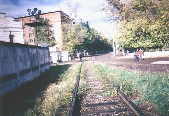 Впереди расположена проходная текстильной фабрики. Вид в сторону станции 5 километр.