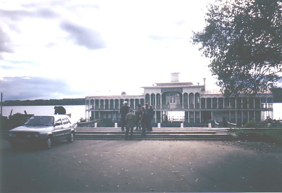 Почти вплотную к рельсам располагается плавучий дебаркадер городской пристани.