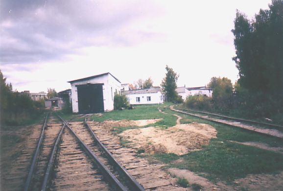 Железнодорожные пути за воротами территории Костромского силикатного завода.