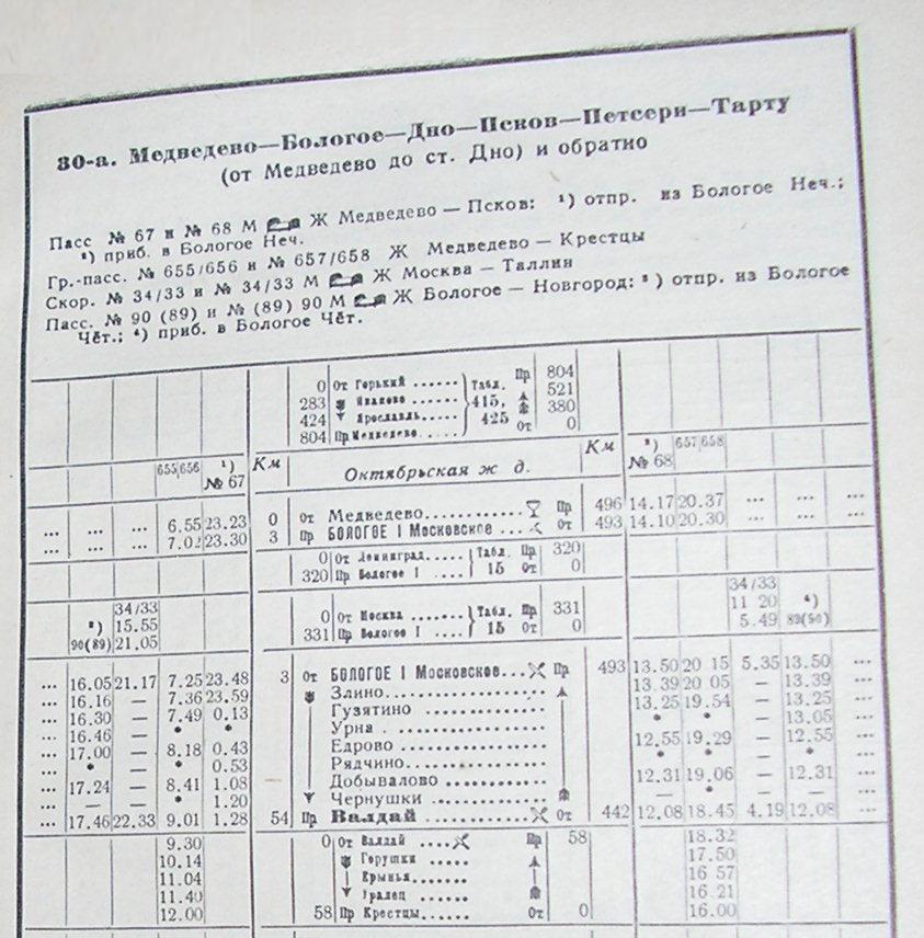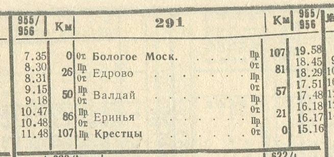Затем маршрут незначительно сократился: вместо Медведево — Крестцы поезд стал курсировать в сообщении Бологое — Крестцы. Таким маршрут пассажирского поезда являлся вплоть до чёрного дня в 1992 году.