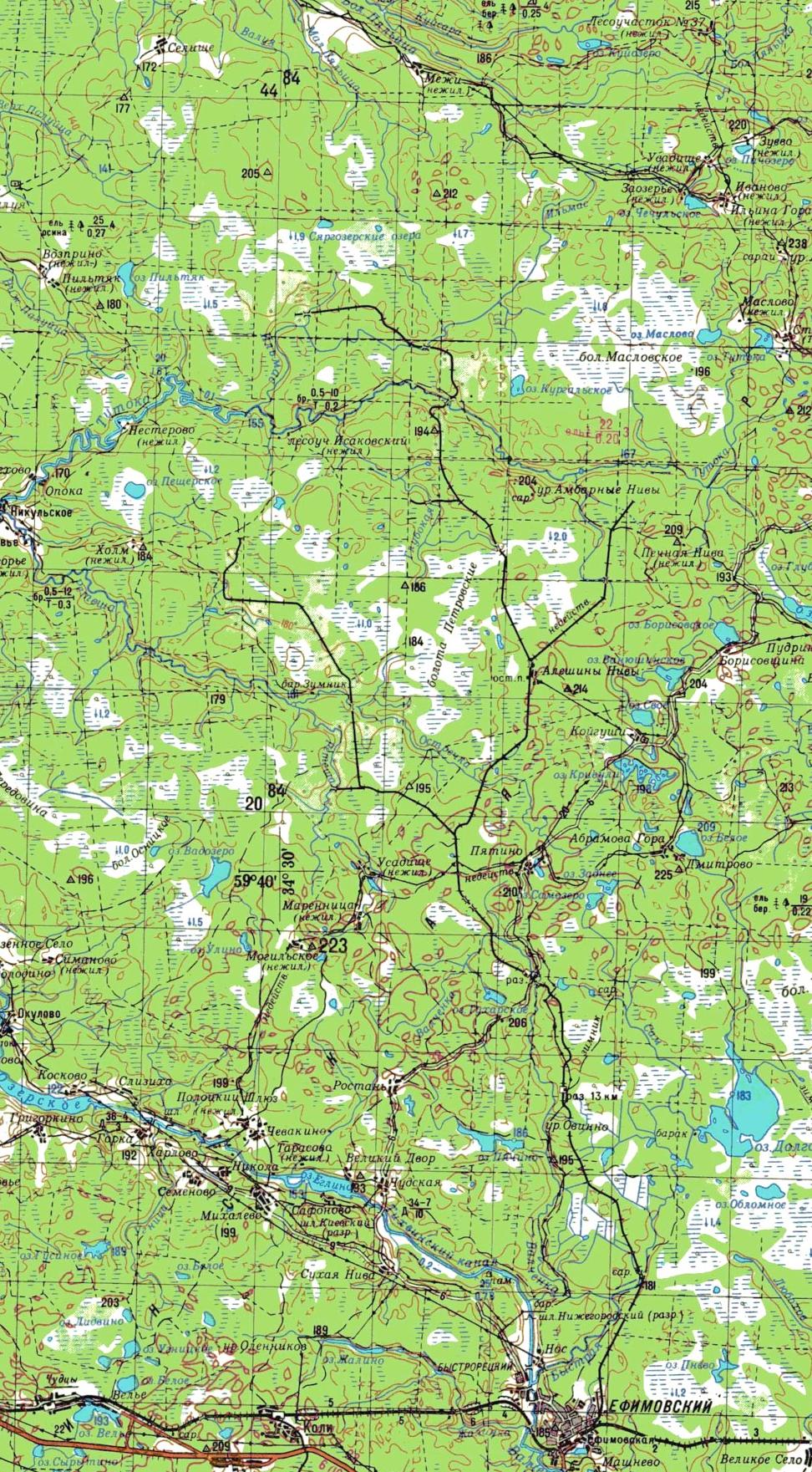 Узкоколейная железная дорога на топографической карте масштаба 1:200 000, изданной в 1986 году.