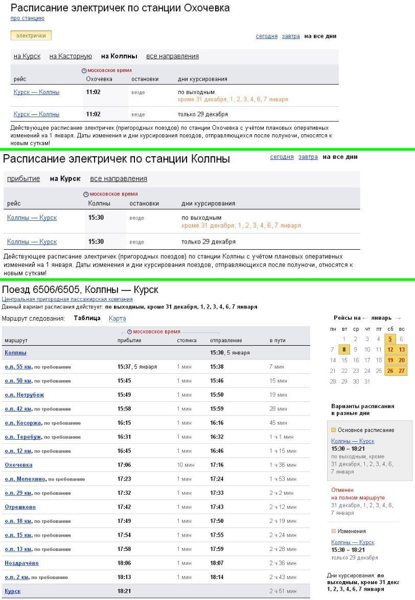 Расписание движения поезда Курск — Колпны, декабрь 2018 года.