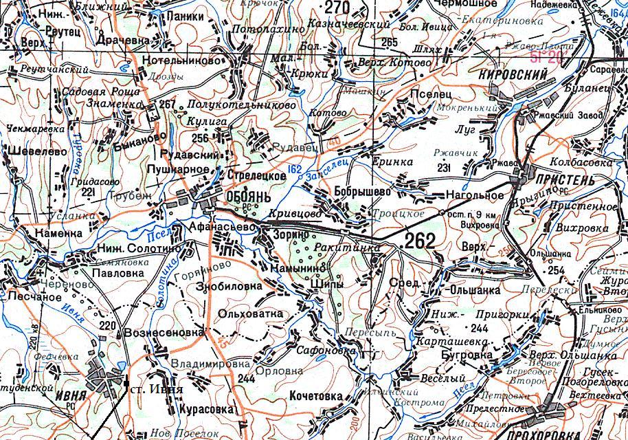 ЖЕЛЕЗНОДОРОЖНАЯ ЛИНИЯ РЖАВА — ОБОЯНЬ СХЕМЫ И ТОПОГРАФИЧЕСКИЕ КАРТЫ