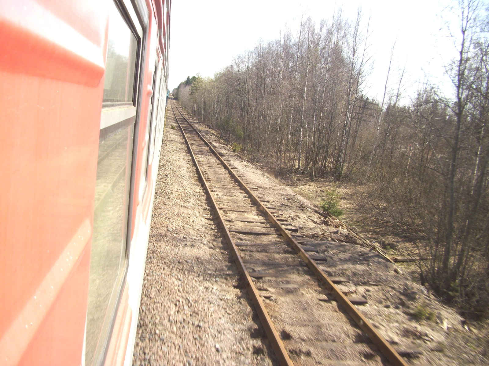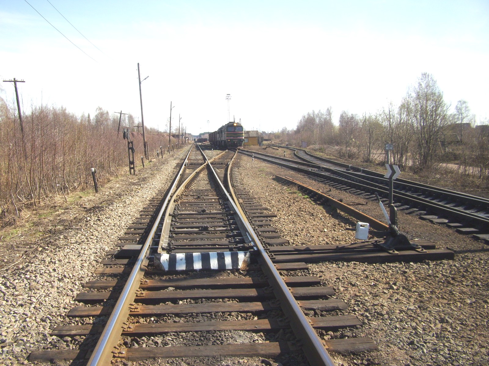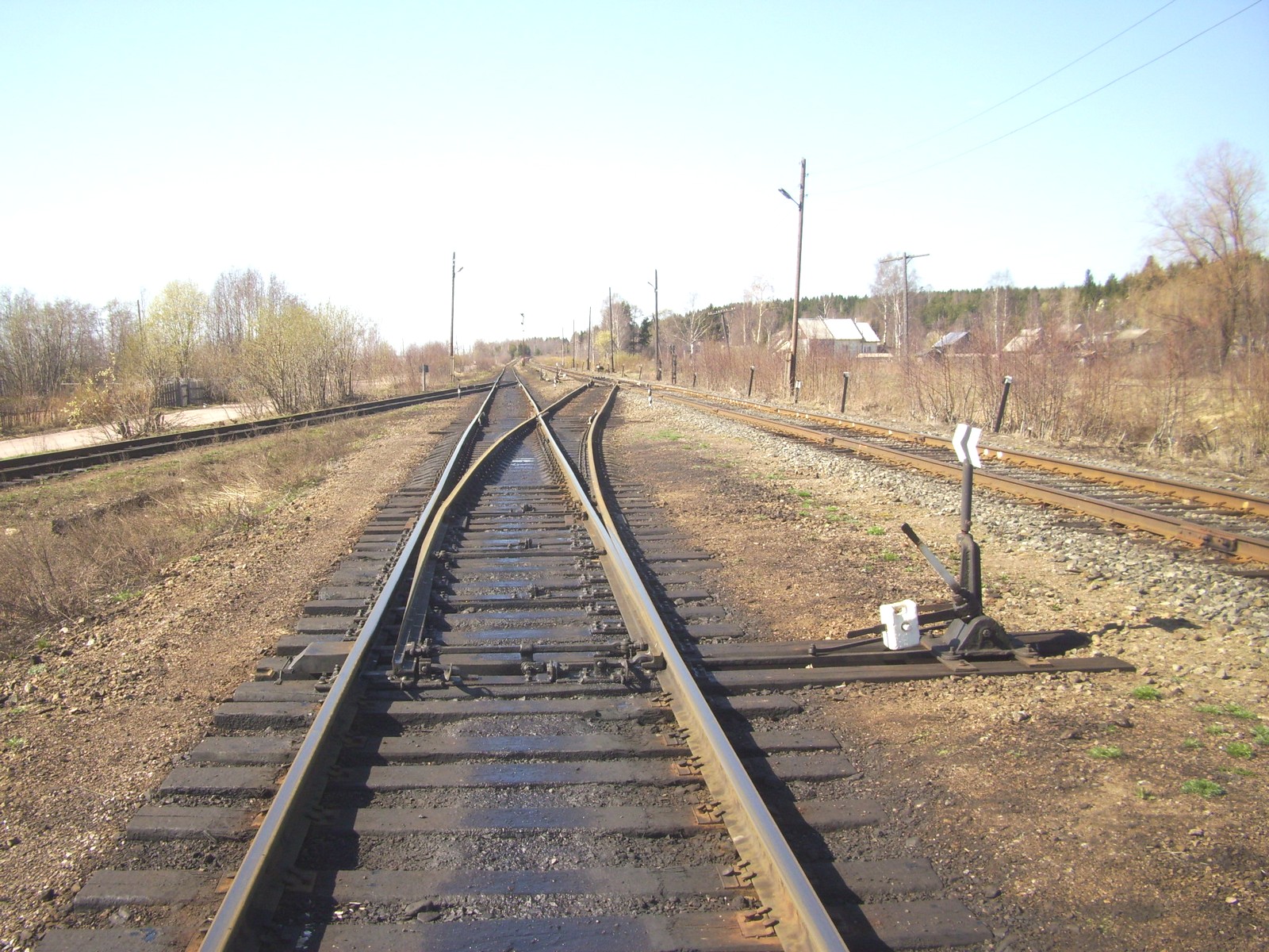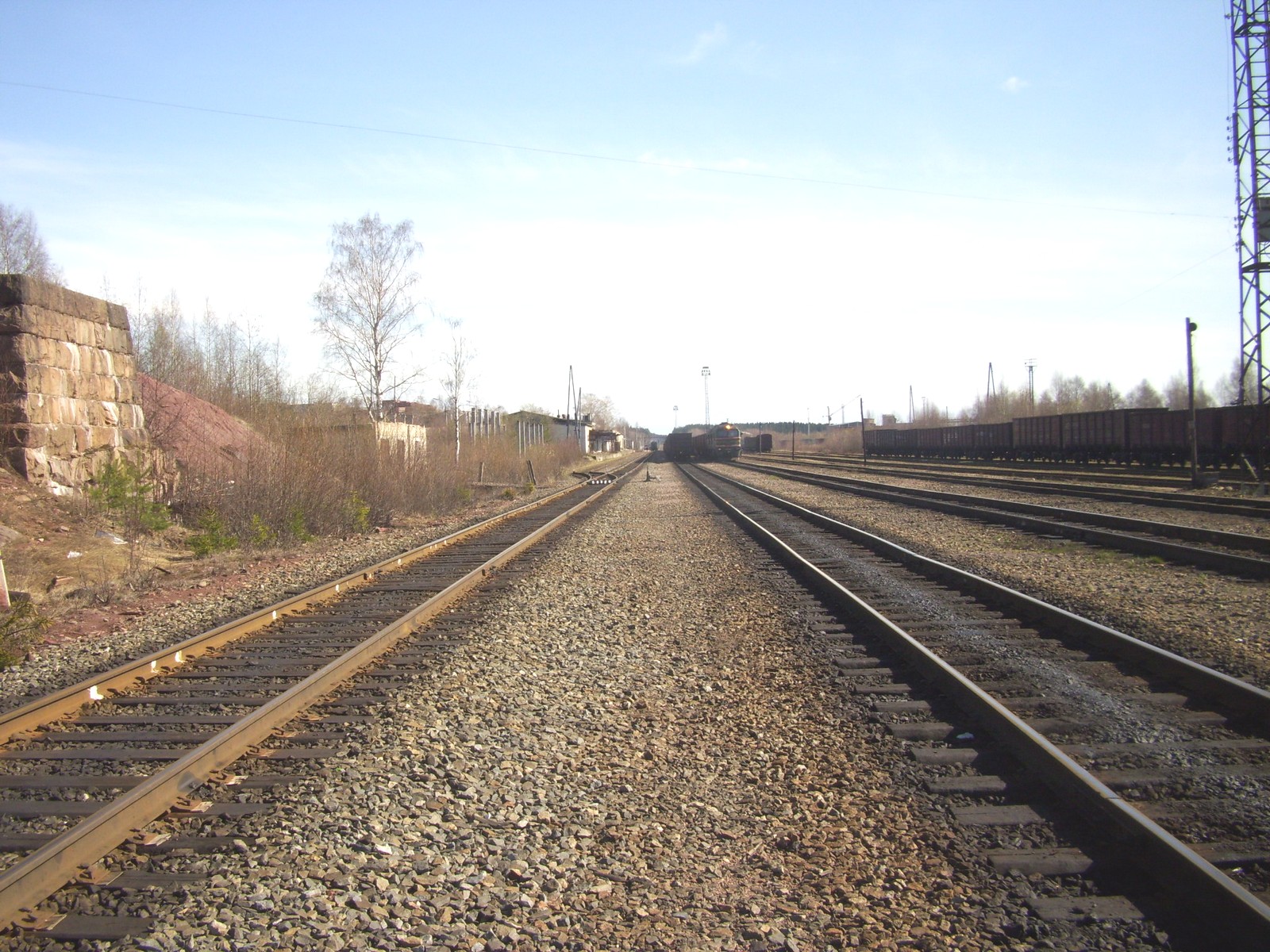 Окрестности Ляскеля. Пересечение с подъездным путём Ляскельского бумажного завода, до 1970-х годов узкоколейным.
