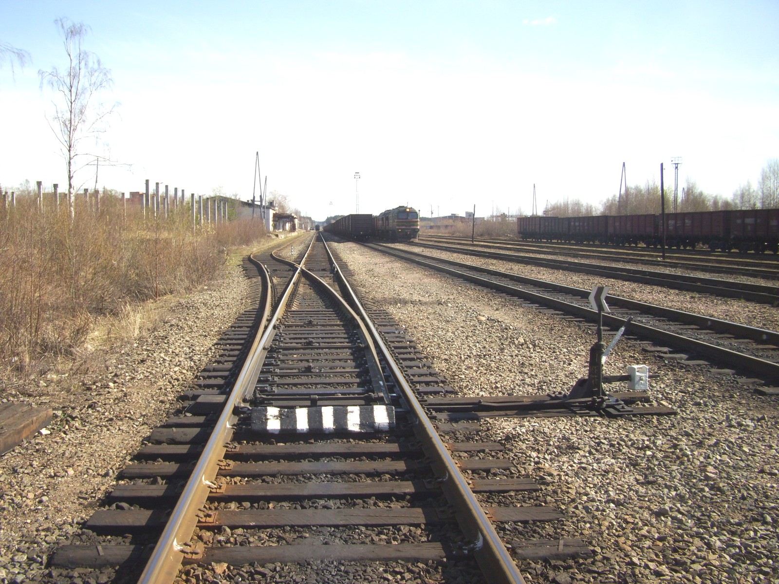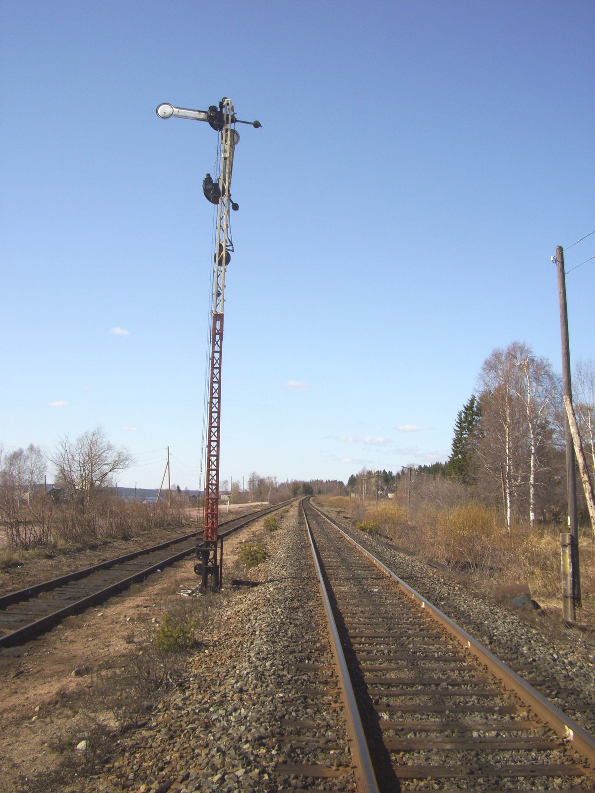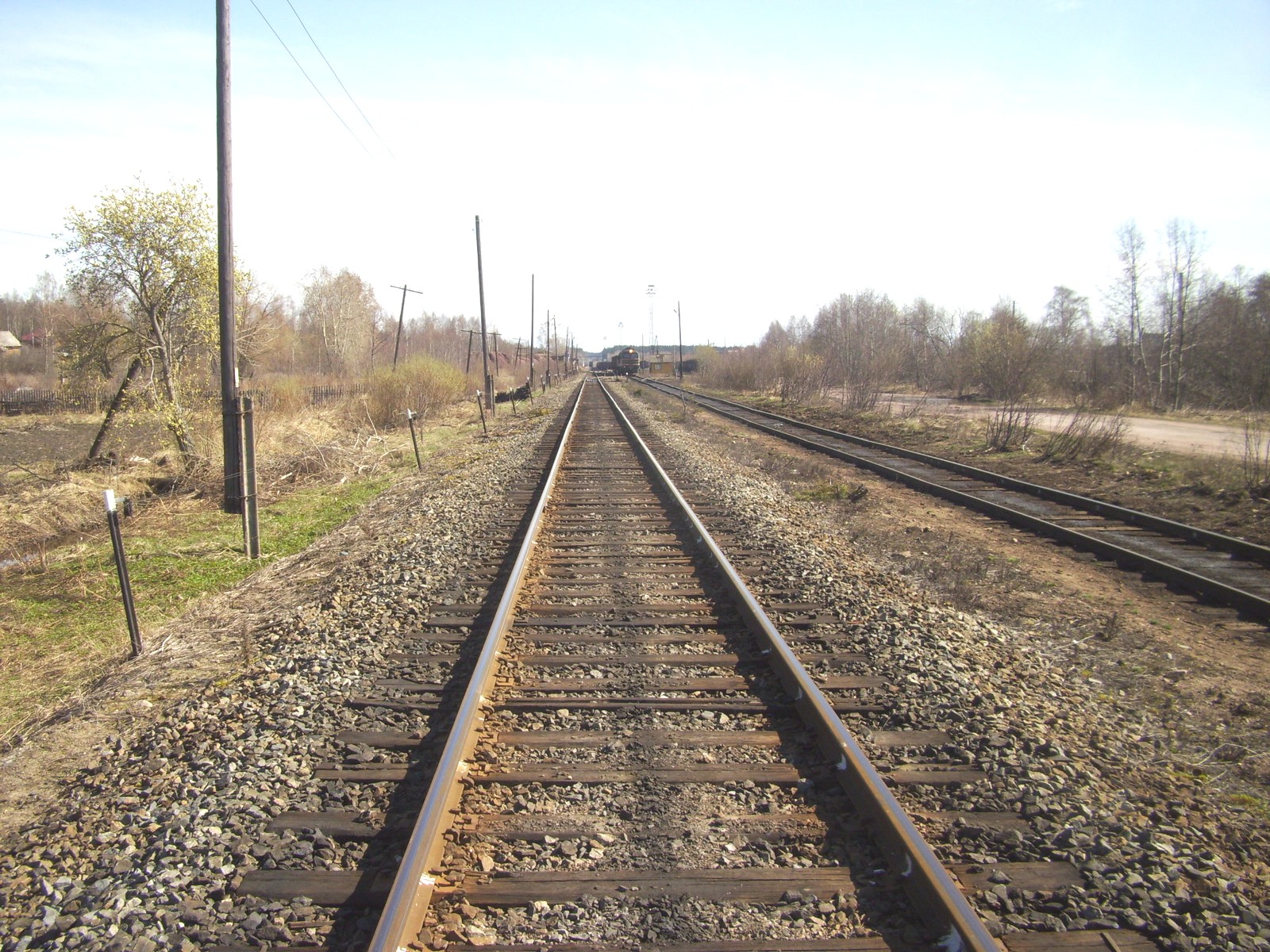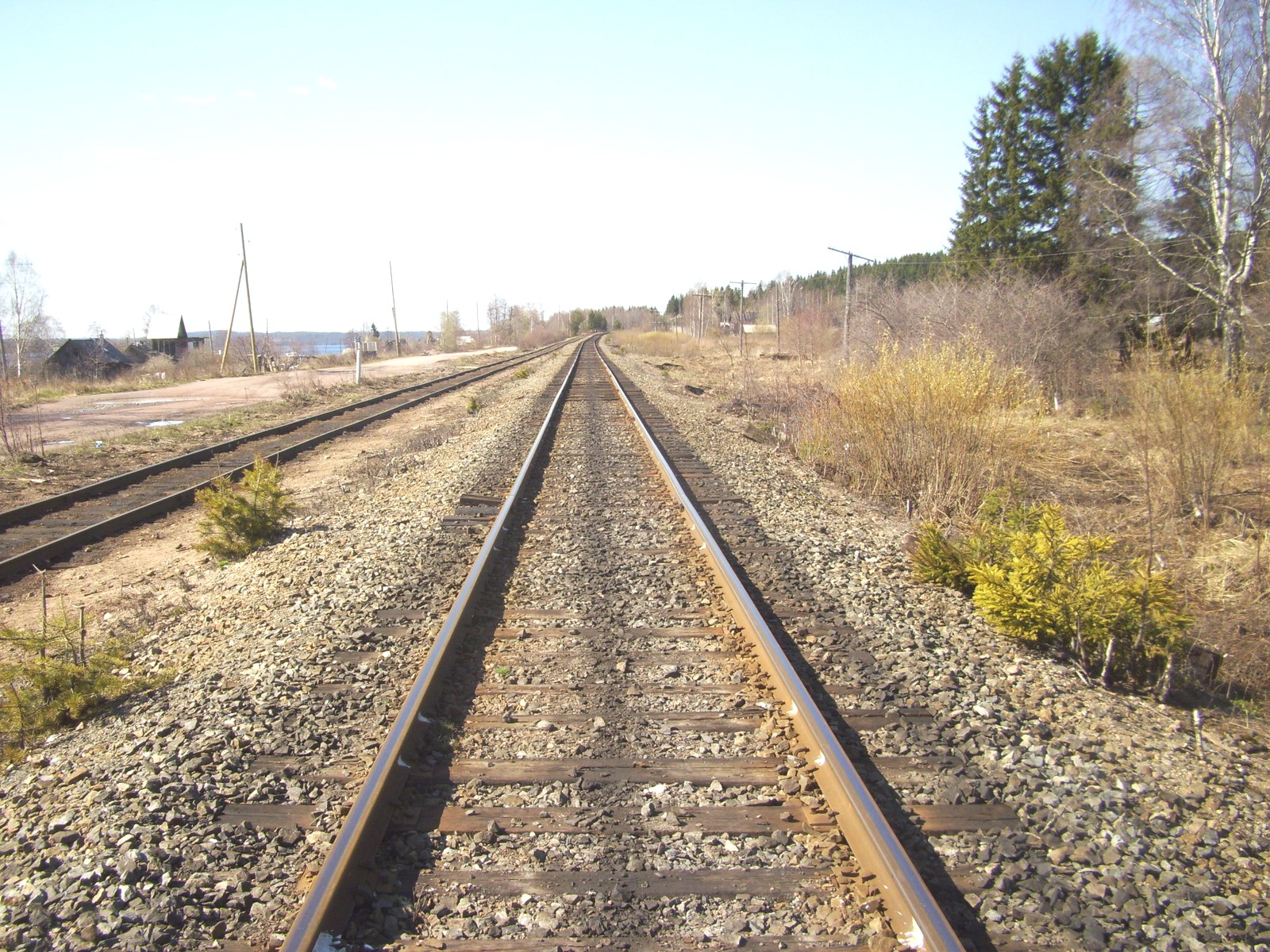 Окрестности Ляскеля. Пересечение с подъездным путём Ляскельского бумажного завода, до 1970-х годов узкоколейным.