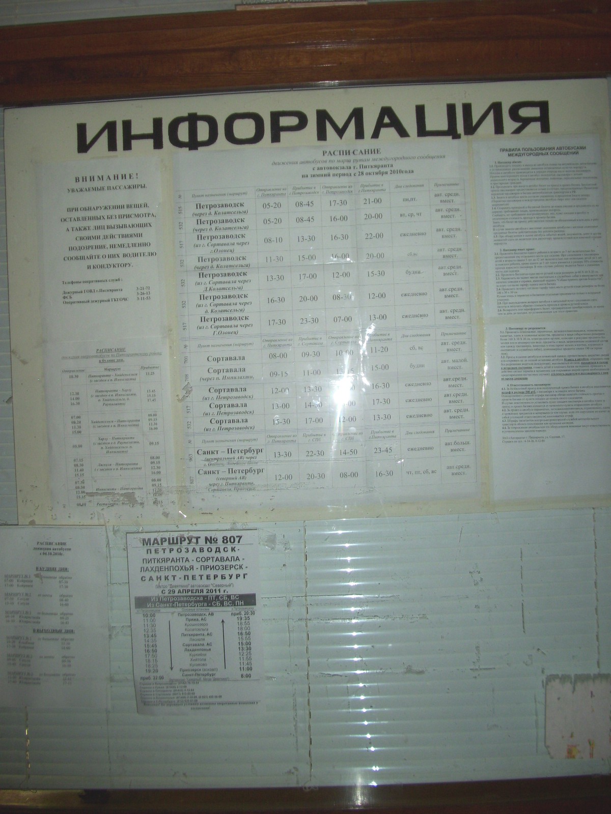 Питкяранта. На вокзале самым наглым образом вывешено автобусное расписание. Нормальный человек,