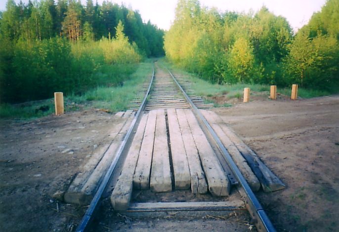 Тот же подъездной путь. Пересечение с автодорогой. Вид в сторону нижнего склада.
