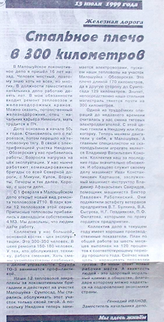 «Гулял в Малошуйке британский премьер». Публикация из газеты Онежского района «Онега», 27 января 1999 года.