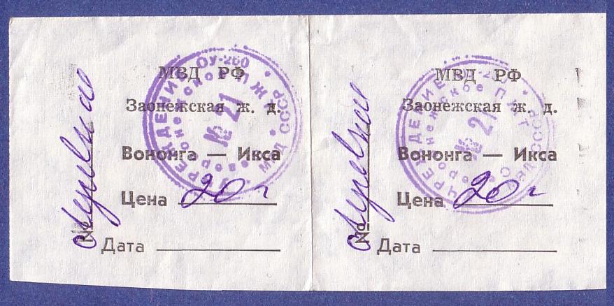 ЗАОНЕЖСКАЯ ЖЕЛЕЗНАЯ ДОРОГА ПРОЕЗДНЫЕ ДОКУМЕНТЫ (БИЛЕТЫ)