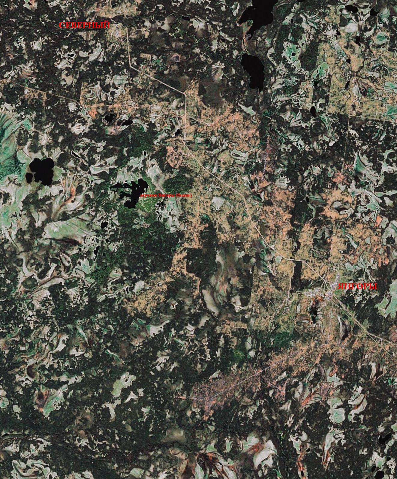 Окрестности Янгор и Северного на спутниковом снимке (источник — «Google Maps»).