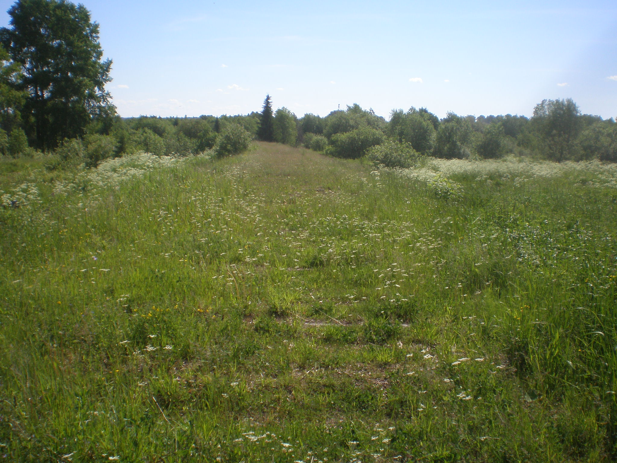 Разобранная железная дорога на западной окраине посёлка Пуксоозеро. Вид на восток, в сторону станции Пуксоозеро.