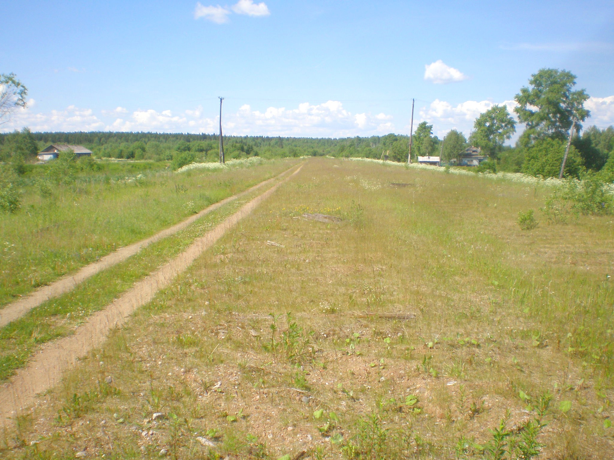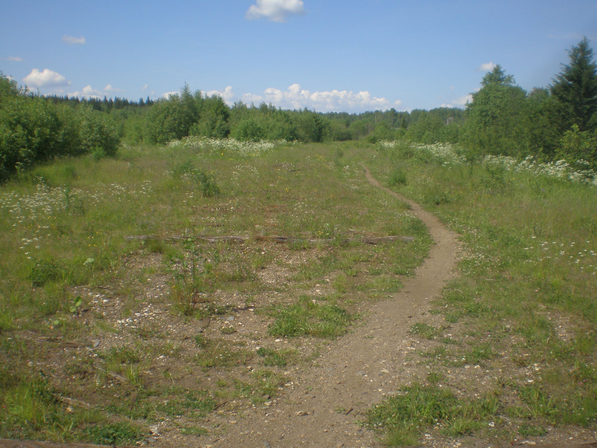 Начинается бывшая станция Пуксоозеро. Вид в восточном направлении.