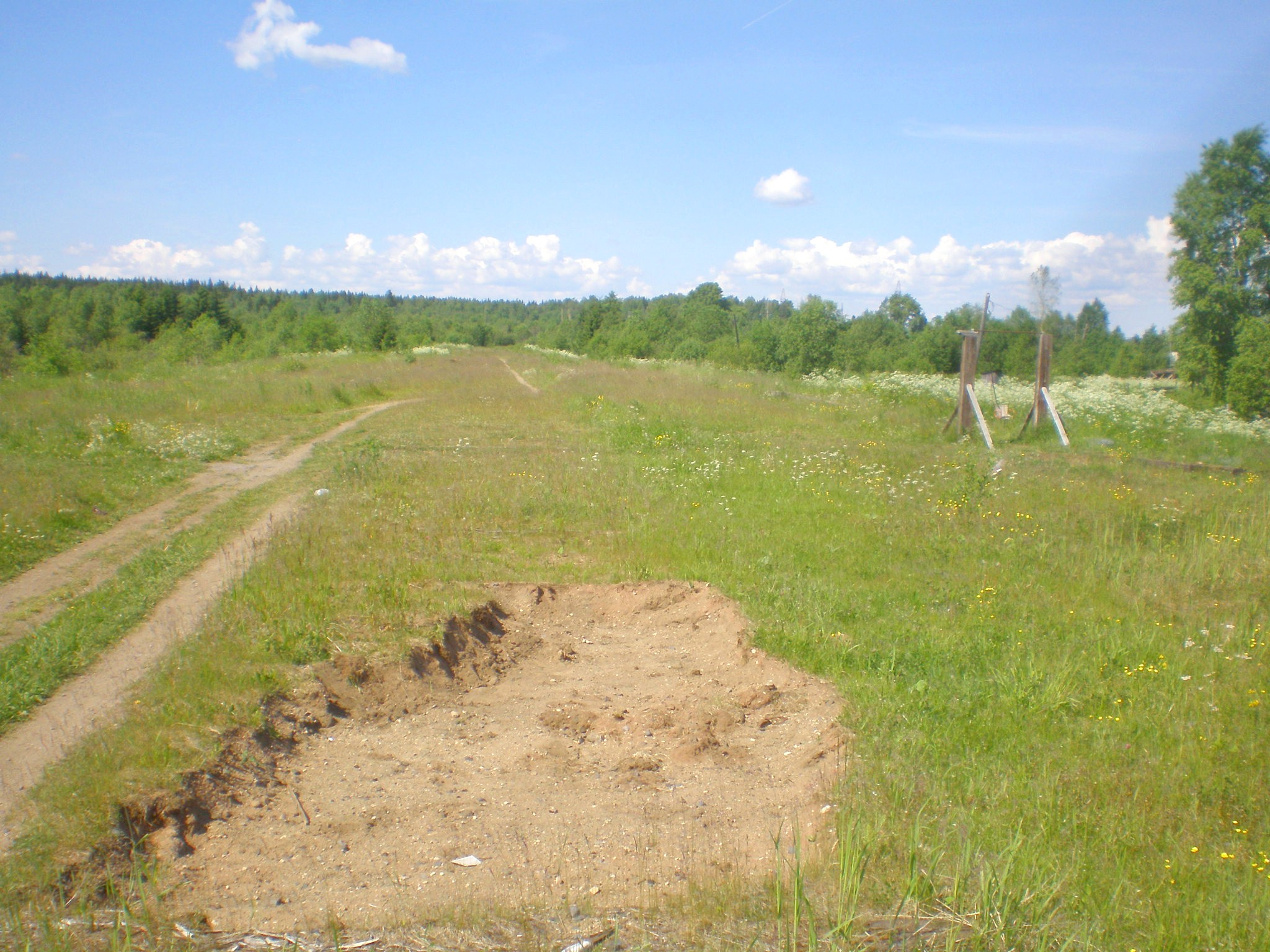 Окрестности бывшего разъезда Белозеро. Впереди — бывший переезд (грунтовая дорога к посёлку Белое Озеро).