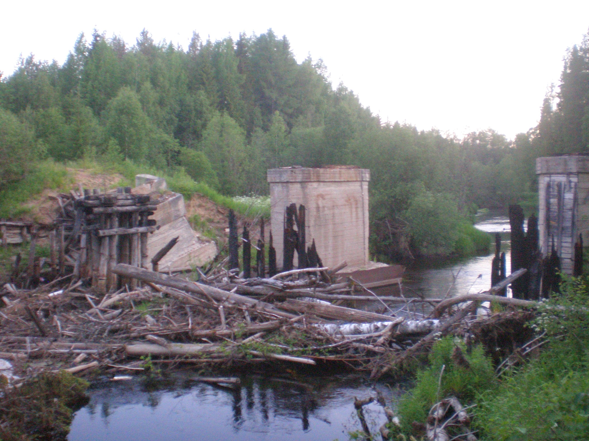 Перегон Азинозеро — Елсозеро. Разрушенные мосты через Мехреньгу.
