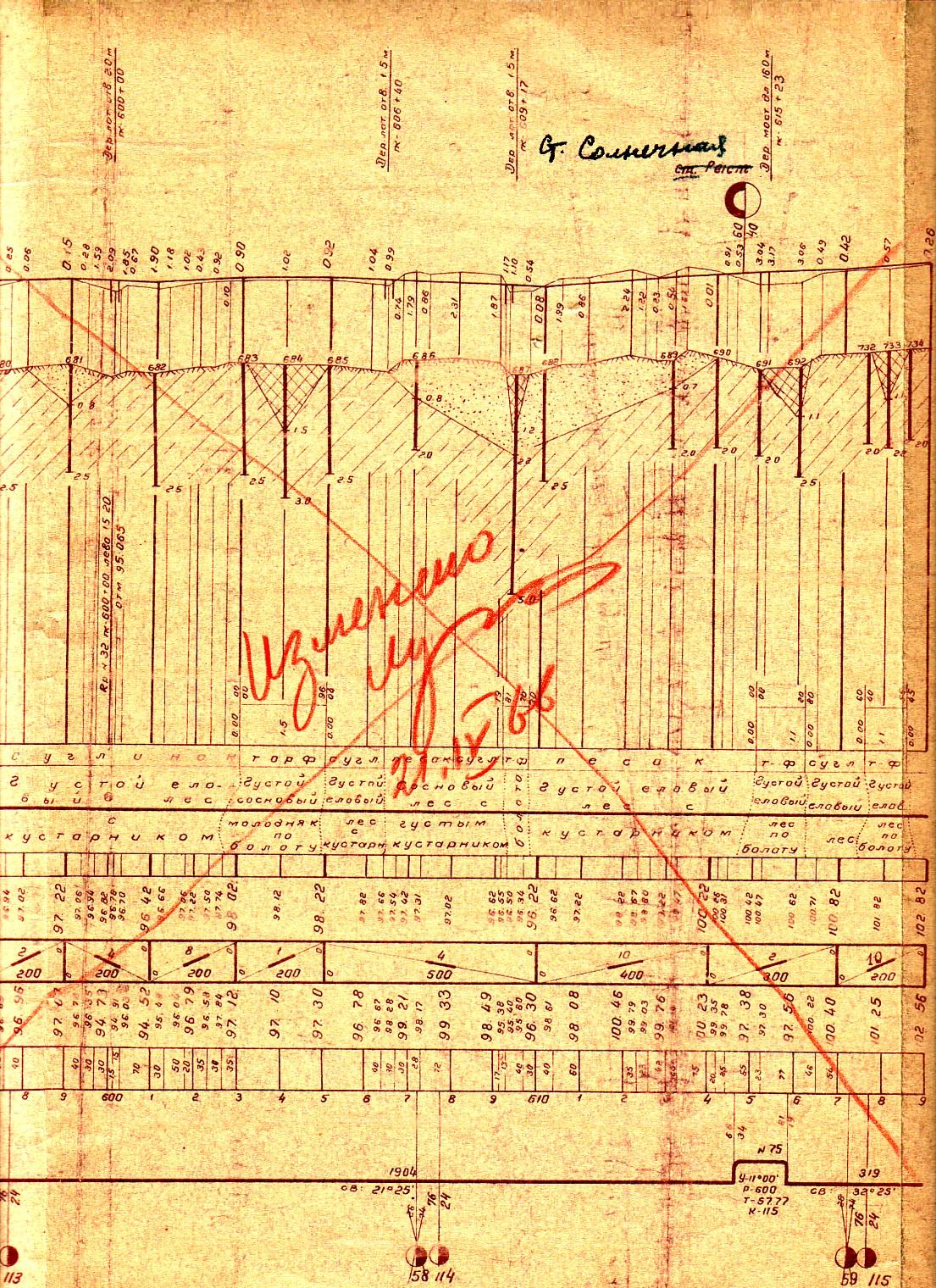 Технический проект (1954 год) — участок 111 км — 113 км.