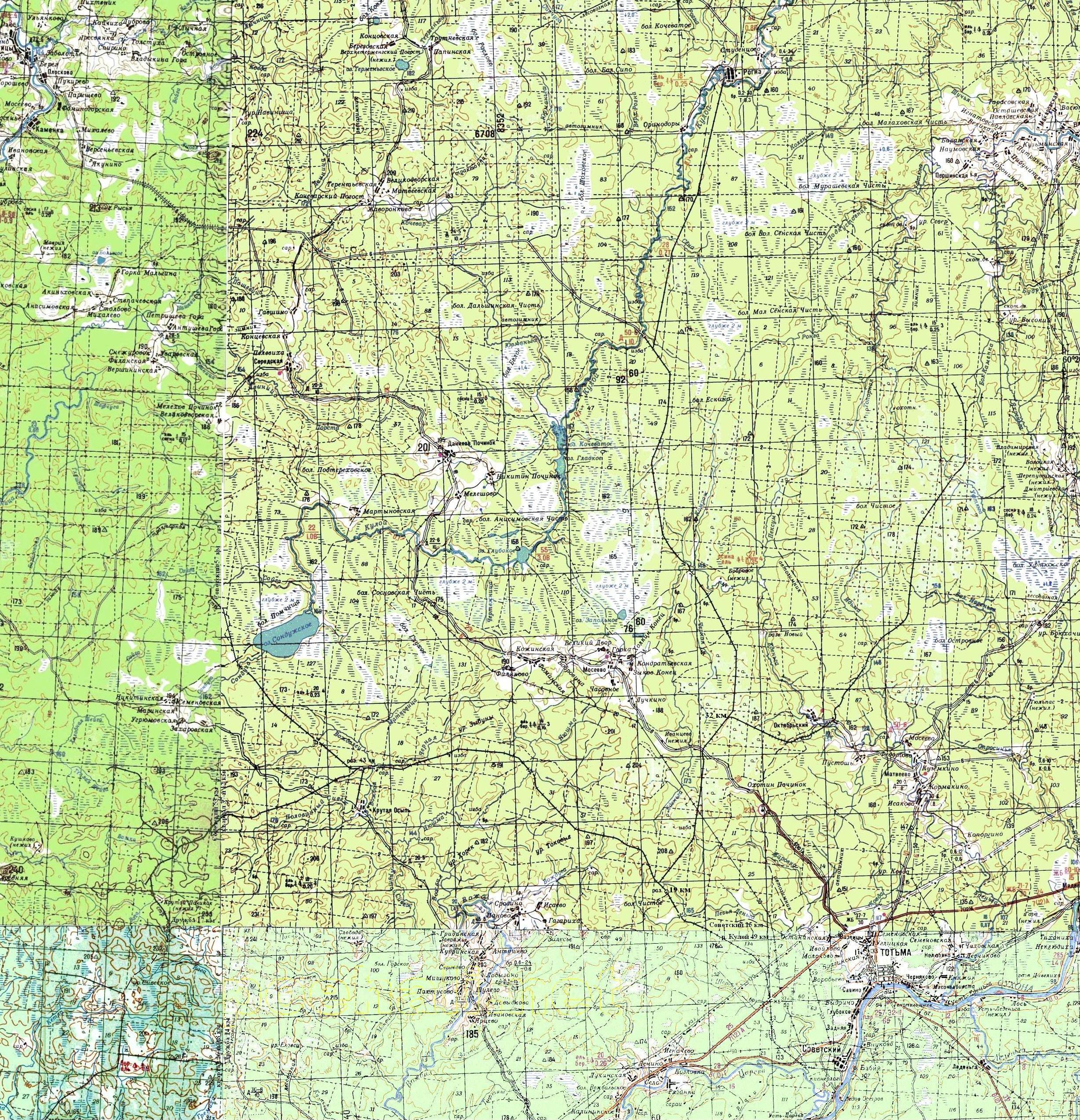 Узкоколейная железная дорога на топографической карте масштаба 1:200 000.