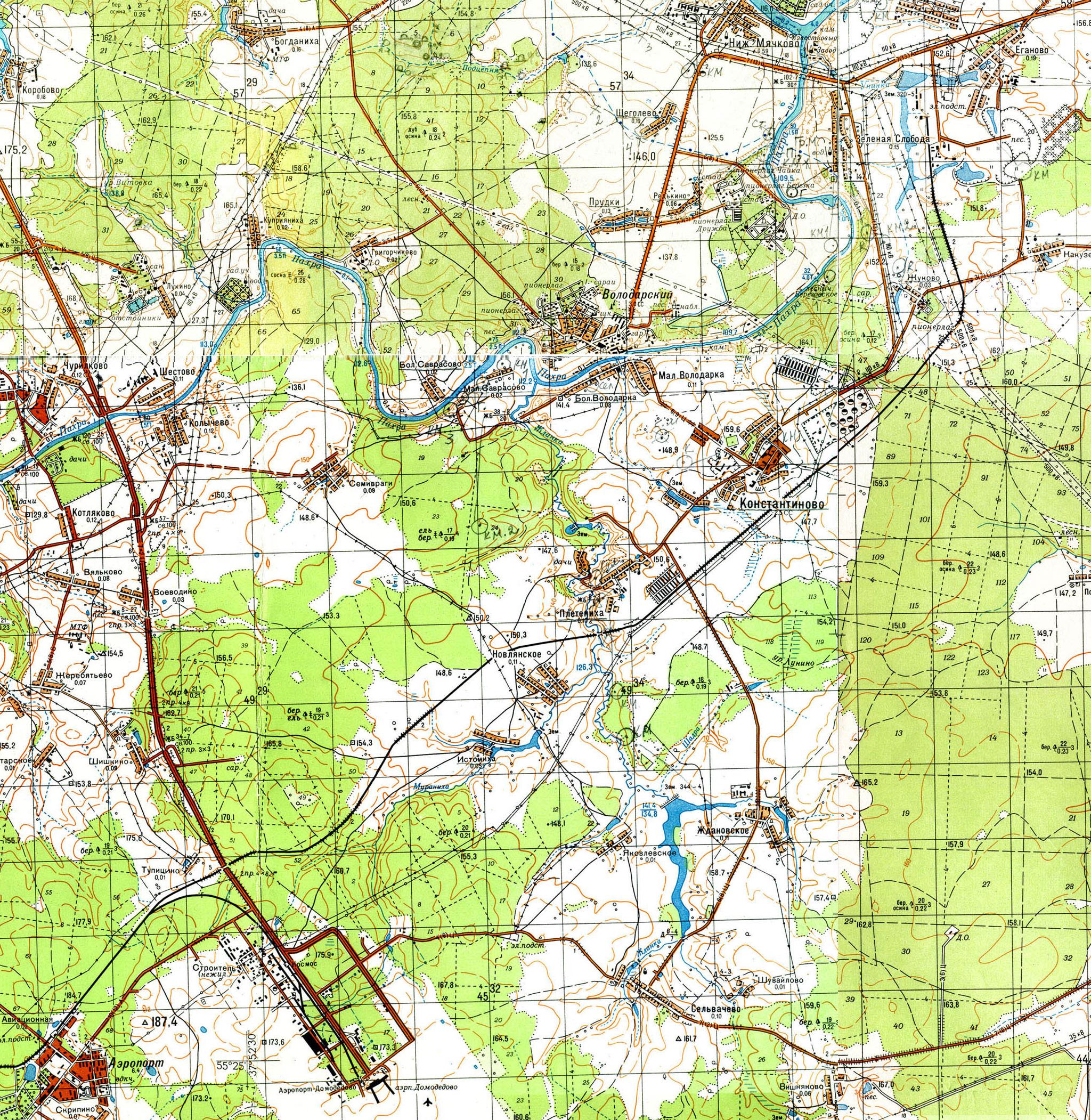 Железнодорожная линия на топографической карте масштаба 1:100 000, изданной в 1985 году (основная часть), 1987 году (крайняя восточная часть).
