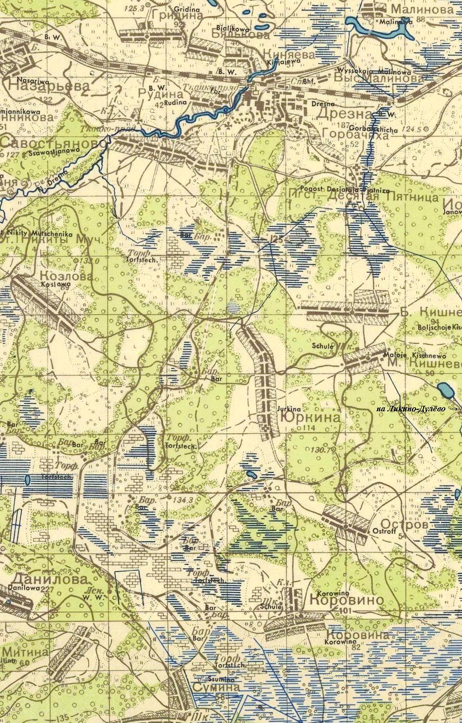 германской армией посредством нанесения надписей на немецком языке). Состояние местности на 1930-е годы.
