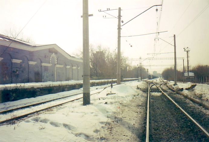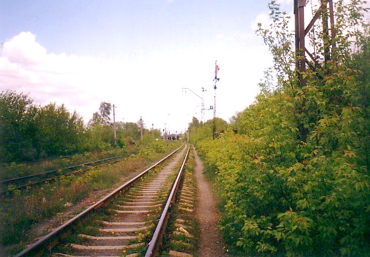 Недействующий семафор на станции Яничкино. Вид со стороны Дзержинского в северном направлении.