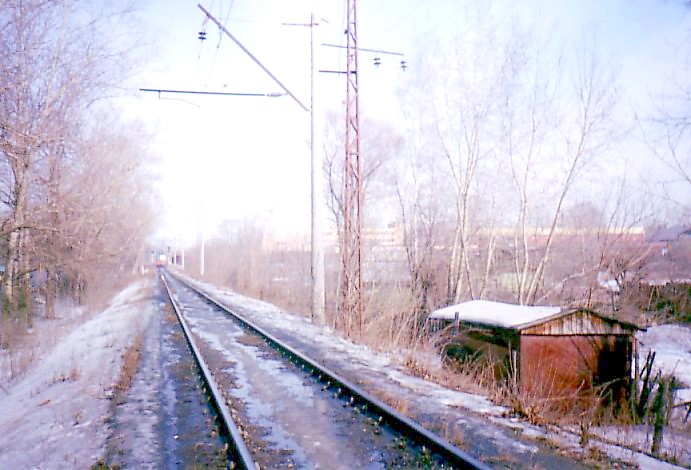 Перегон Мальчики — Яничкино, вблизи путепровода Новорязанского шоссе. Вид на север.