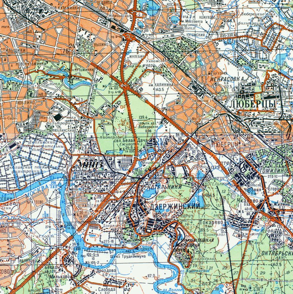 Железнодорожная линия на топографической карте масштаба 1:50 000 (в 1 сантиметре — 500 метров), изданной в 1987 году.