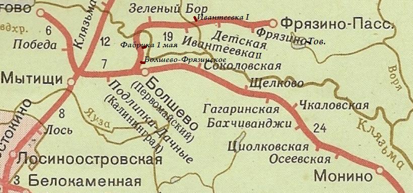 Линия относилась к Ярославской железной дороге. Участок Ивантеевка — Фрязино не показан.