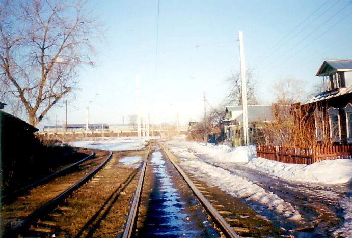 Трамвайная линия в окрестностях конечной станции «Мясокомбинат». Вид в сторону
